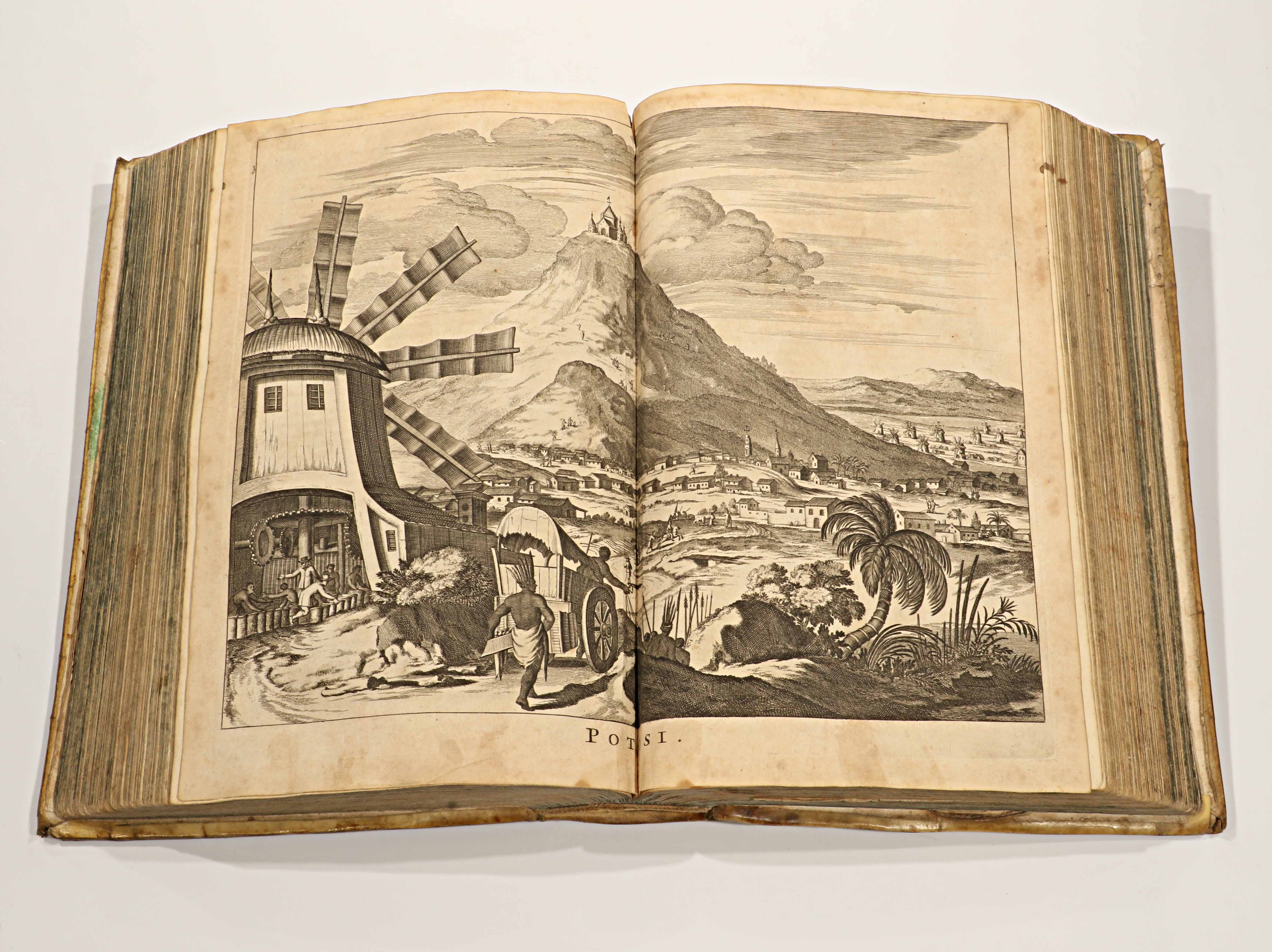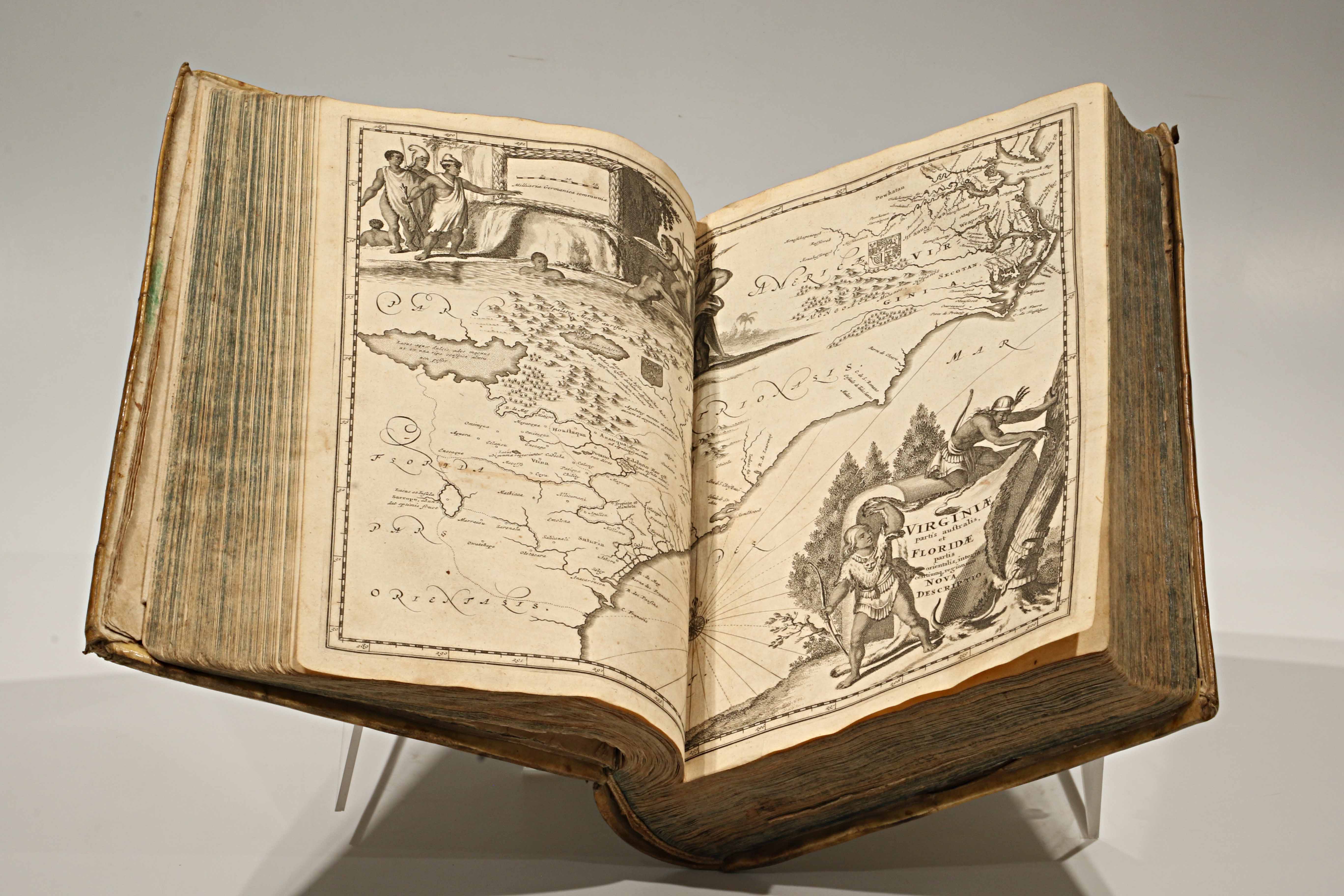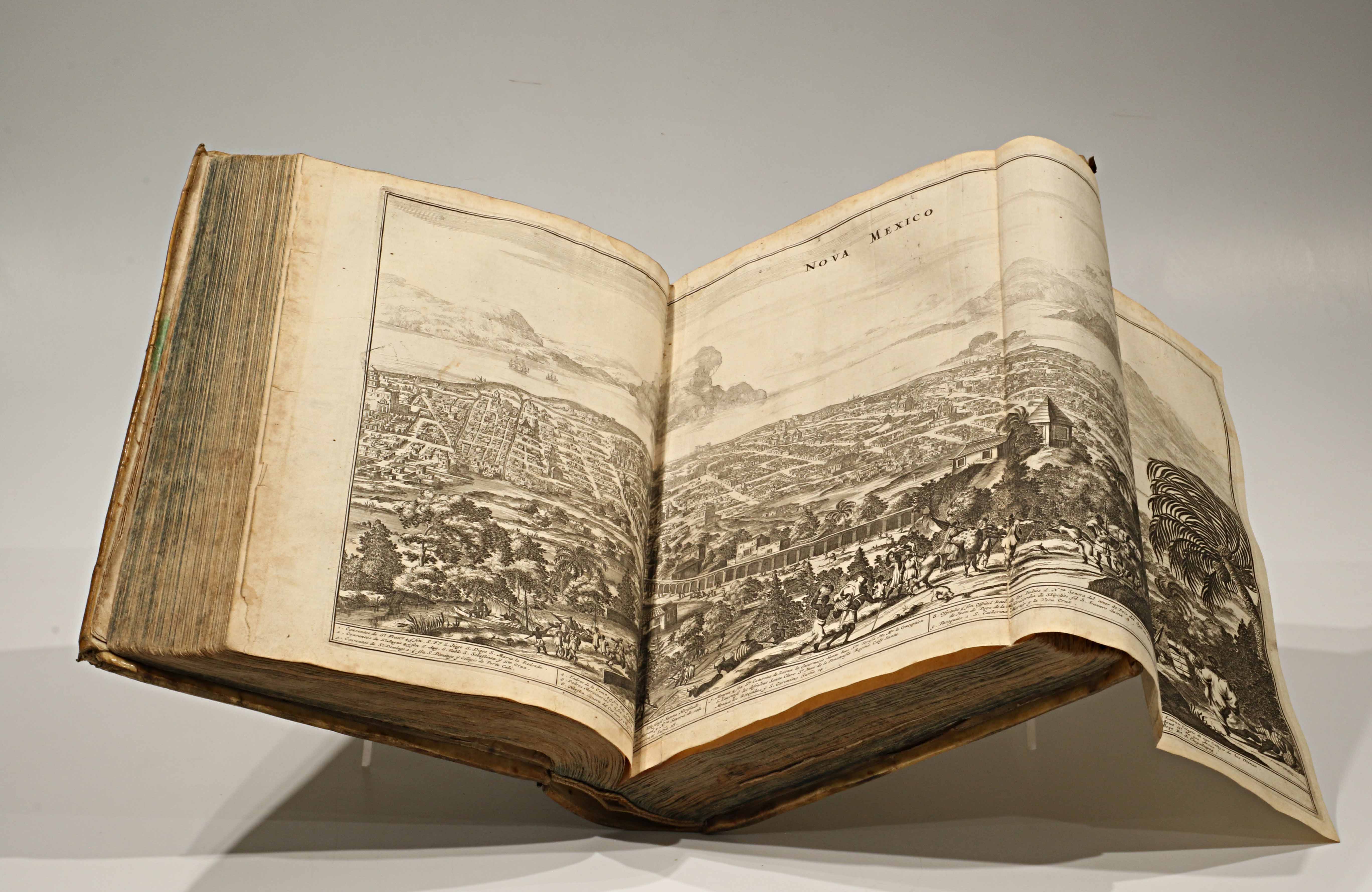 El volumen reúne 125 grabados al cobre, entre mapas generales y regionales, vistas panorámicas de ciudades como México, Cuzco, Lima, Quito, Cartagena de Indias, Popayán, La Habana y Nueva Ámsterdam (actual Nueva York), junto con retratos de gobernantes indígenas, ceremonias, fauna, flora y criaturas imaginarias. En sus láminas, la mirada europea tradujo la distancia y la curiosidad en imágenes desbordantes de detalle y dramatismo.