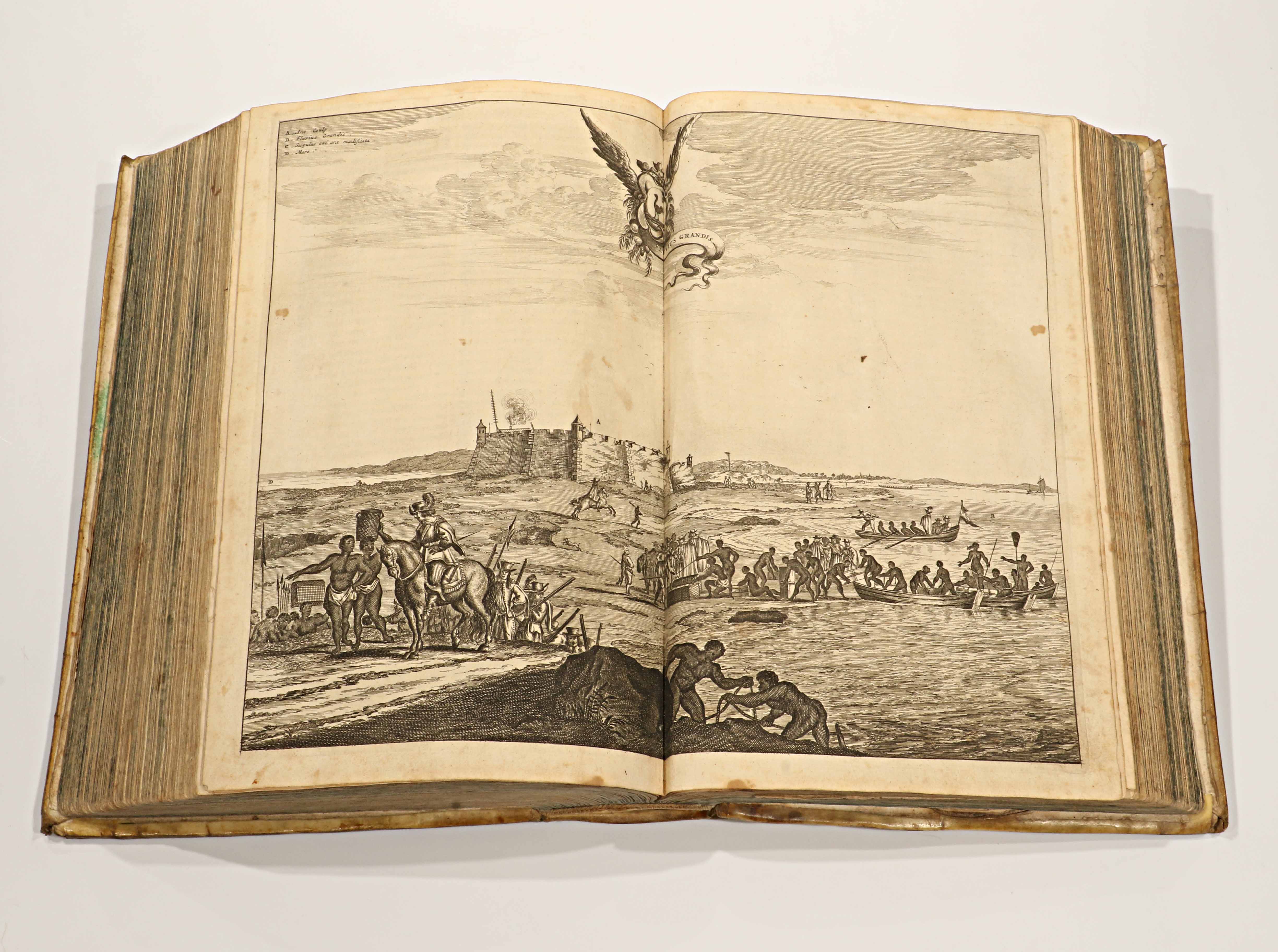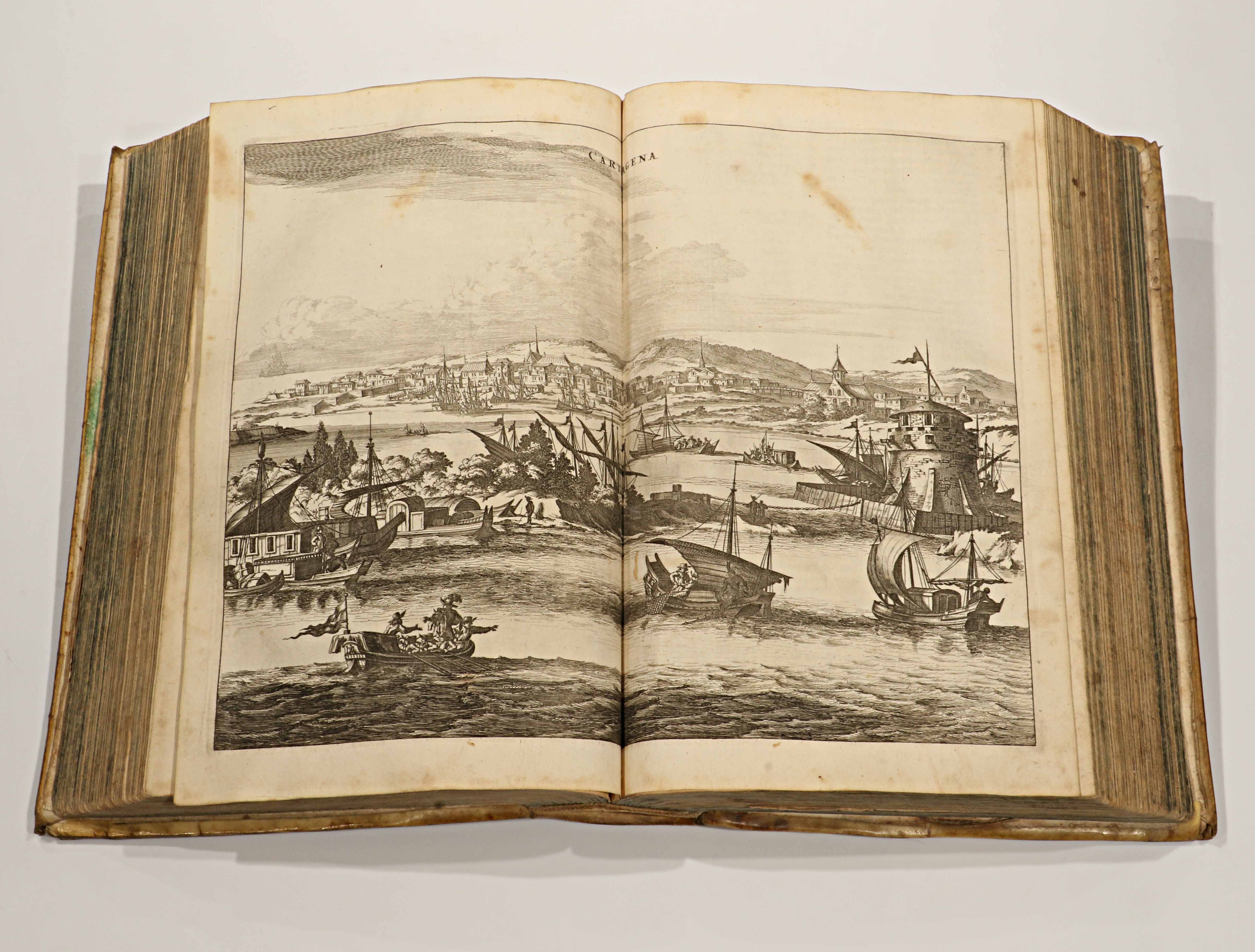 Folio. Ejemplar completo con todos sus grabados y mapas plegados, en encuadernación original de pergamino.